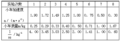 (2)保持托盘中砝码质量不变,改变小车质量m,分别得到小车加速度a与质量m及对应的数据如下表: