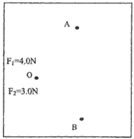 1、实验题 下图为一次验证“互成角度的两个共点力的合成”的实验记录,O为橡皮条节点的位置,F1、F2分别沿OA、OB的连线。