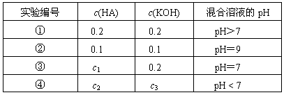 (3)③实验中c1______0.2 (选填“=”或“>”或“<”)。混合液中离子浓度c(A-)与c(K+)的大小关系是_________________。