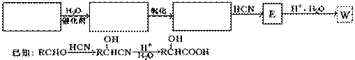 2、填空题  (19分)有机物W(C3H6O3)能与NaHCO3反应,分子中含有四种活动性不同的氢原子,个数比为3:1:1:l。