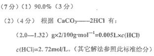 2、计算题 (7分)现有一含少量SiO2杂质的石灰石样品,某实验小组同学为准确测定该样品的纯度,他们取2.00g样品置于烧杯中,把20.00mL某浓度的盐酸分成4等份,分别加入烧杯中进行反应,4次实验的结果记录如下: