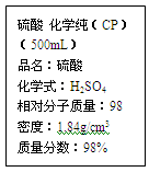 2、填空题 I.(6分)下图是某学校实验室从化学试剂商店买回的硫酸试剂标签上的部分内容。