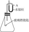 4、实验题 在常温下,按右下图装配好装置,待内外空气压强不变时,水银柱液面在A处,取下橡皮塞,在玻璃燃烧匙中加入二硫化碳,用酒精灯点燃,并迅速移入锥形瓶中,再塞紧橡皮塞,二硫化碳安静地燃烧,水银柱推向左管,简要完成下列问题: