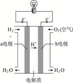 (3)通过氢气的燃烧反应,可以把氢气中蕴含的化学能转化为热能,如果将该氧化还原反应设计成原电池装置,就可以把氢气中蕴含的化学能转化为电能,右图就是能够实现该转化的装置,被称为氢氧燃料电池。该电池的正极是_________________ (填“a电极”或“b电极”),在负极发生的电极反应是_________________,电池反应为_________________。