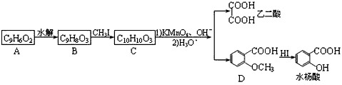 4、推断题 香豆素是广泛存在于植物中的一类芳香族化合物,大多具有光敏性,有的还具有抗菌和消炎作用。它的核心结构是芳香内酯A,其分子式为C9H6O2,该芳香内酯A经下列步骤转变为水杨酸和乙二酸。