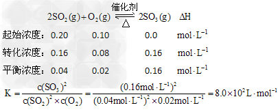 ①T℃时,将2.0molSO2和1.0molO2置于10L密闭恒容反应器中,反应达平衡后,体系总压强为0.10MPa,计算该反应的平衡常数(写出计算过程,计算结果保留两位有效数字):