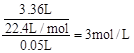 3、填空题 (8分)3.01×1023个HCl分子的物质的量是?,摩尔质量是?,其在标准状况下的体积为?,将其溶于水配成1L溶液,所得溶液的物质的量浓度为?。