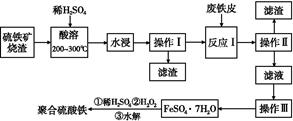 2、填空题 硫铁矿烧渣是一种重要的化工生产中间产物,主要成分是Fe3O4、Fe2O3、FeO和二氧化硅等。下面是以硫铁矿烧渣制备高效净水剂聚合硫酸铁的流程图: