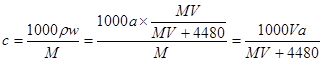 3、选择题 标准状况下,将V L气体(摩尔质量为M g/mol)溶于0.2L水中,所得溶液的密度是a g/cm3,则此溶液的物质的量浓度(mol/L)为