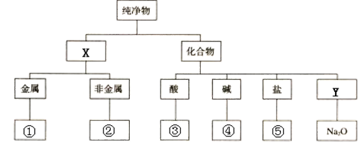 X属于_________(填物质类属);若图中①—⑤分别代表上述五种物质,则④对应的化学式是?。
