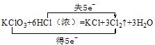 3、填空题 (7分)在KClO3+6 H Cl(浓)=KCl+3Cl2↑+3H2O的反应中,氧化剂是___________,还原产物是_________,得电子与失电子个数比是____________,氧化产物与还原产物的质量比是________,反应中被氧化的盐酸和未被氧化盐酸的质量比是?,