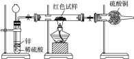 2、实验题 (11分)铜及其化合物一般都具有特征颜色,例如Cu、Cu2O呈红色,CuO呈黑色、CuSO4·5H2O呈蓝色等。研究性学习小组甲为检测实验室用H2还原CuO所得的红色固体中是否含有 Cu2O进行了认真探究。