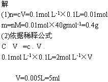 3、计算题 实验室需要0.1 mol /L氢氧化钠溶液100 mL,现有2 mol /L氢氧化钠溶液。