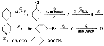 2、填空题 由环己烷可制备1,4-环己醇二醋酸酯。下面是有关的8 步反应(其中所有无机产物都已略去)。