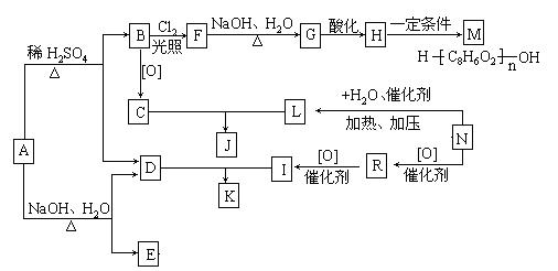 ,从A出发,可发生图示中的一系列反应。其中M属于高分子化合物,J和K互为同分异构体,N的产量可作为衡量一个国家石油化工发展水平的标志。