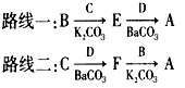 3、填空题 阿立哌唑(A)是一种新的抗精神分裂症药物,可由化合物B、C、D在有机溶剂中通过以下两条路线合成得到。