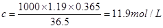 参考答案:(1)11.9mol/L (2)1mol (3)11.2L