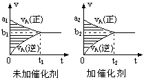 pC(g)+qD(g)的v-t图象如左图,如若其它条件不变,只是在反应前加入合适的催化剂,则其v-t图象如图: