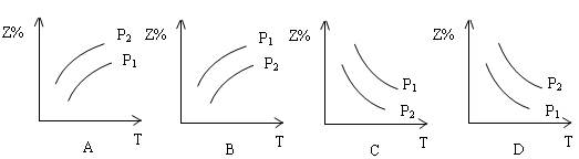 ?2Z(g) ;△H﹤0。在不同温度T、不同压强(P1>P2)下,达到平衡时,混和气体中Z的百分含量随温度变化的曲线应为