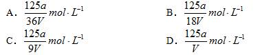 5、选择题 将溶质的质量分数为a%的NaOH溶液蒸发掉mg水后,变成溶质质量分数为2a%的NaOH不饱和溶液VmL ,所得溶液的物质的量浓度是:?(?)?