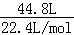 本题解析: 根据n=计算标准状况下44.8LHCl气体的物质的量为