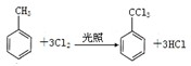 ,可有甲苯与氯气反应取代反应生成,方程式为