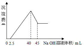 5、选择题 取一定量的铝土矿(含Al2O3、Fe2O3、SiO2)样品,放入盛有100 mL H2SO4溶液的烧杯中,充分反应后过滤,向滤液中加入10 mol/L的NaOH溶液, 产生沉淀的量与所加NaOH溶液的体积的关系如下图所示。则原H2SO4物质的量浓度是