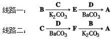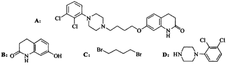 5、填空题 阿立哌唑(A)是一种新的抗精神分裂症药物,可由化合物B、C、D在有机溶剂中通过以下两条路线合成得到。