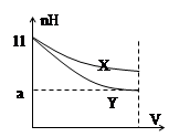2、选择题 pH=11的X、Y两种碱溶液各10mL,分别稀释至1000mL。其pH与溶液体积(V)的关系如图所示,下列说法不正确的是(?)