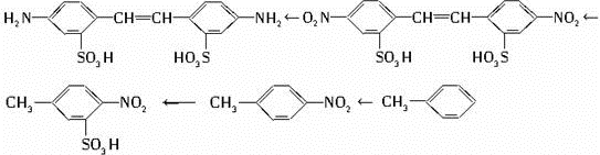 本题解析:根据题干所给信息苯胺具有弱碱性,易被氧化,所以必须在磺化反应和甲苯在NaClO的条件下合成1,2-二苯乙烯后才能将