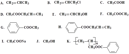 本题解析:本题的突破点有以下几处。首先B通入溴的四氯化碳溶液变为C3H5Br2Cl,所以B为一氯丙烯,A为丙烯。另外B通过氢氧化钠水溶液形成E,所以E为丙烯醇。第二个突破点在A在催化氧化下生成D,而D的相对原子质量为100,所以D为CH3COOCH2=CH=CH2C为乙酸。第三个突破点在于最后I酸化变成C,所以I为乙酸钠,则F为乙酸甲酯,那么倒推回去J为甲醇。第四个突破点在G的分子式中,不饱和度为4,所以含苯环,在催化下与E反应生成甲醇,所以G为苯甲酸甲酯。H及H的聚合物也可以顺利推出。