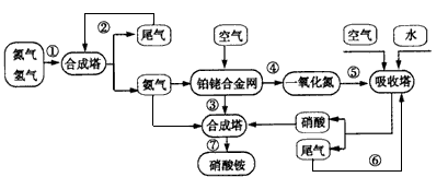 2、填空题 某同学模拟化工生产设计工业合成硝酸铵的流程图如下。