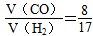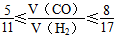 煤的气化可得到CO和H2,CO和H2在上述条件下反应生成汽油(CnH2n+2)和水,配平此反应化学方程式,取n=5和n=8两个极值,计算出CO和H2的体积比,即可确定取值范围。