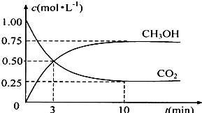 (4)为探究反应原理,现进行如下实验:在体积为1L的密闭容器中,充入1molCO2和3molH2,测得CO2和CH3OH(g)的浓度随时间变化如下图所示.从反应开始到平衡,用氢气浓度变化表示的平均反应速率v(H2)______mol?L-1?min-1.
