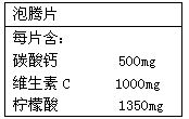 1、选择题 下面是某“泡腾片”的标签。将一片泡腾片放入水中,药片完全溶解,同时产生大量气泡。这个过程(注:维生素C与碳酸钙不反应)正确的是