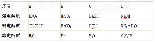 5、选择题  下表中物质的分类组合完全正确的是