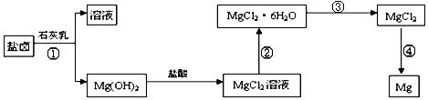 (3)某学校课外兴趣小组从海水晒盐后的盐卤(主要含Na+、Mg2+、Cl-、Br-等)中模拟工业生产来提取镁,主要过程如下:回答下列问题: