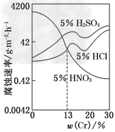 3、选择题 如图是三种稀酸对Fe?Cr合金随Cr含量变化的腐蚀性实验结果,下列有关说法正确的是