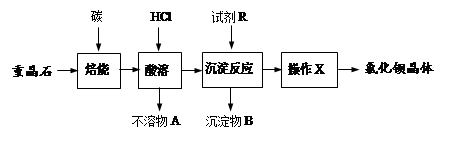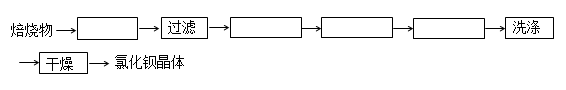 4CO + CaS+ BaCl2。请你完善下列从焙烧后的固体中分离得到氯化钡晶体的实验流程的设计(已知硫化钙不溶于水,易溶于盐酸)。