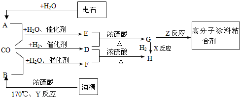 R-O-R+H2O发生,则合理的制备途径为酯化_________、_________(填反应类型)。 4、推断题  CO不仅是家用煤气的主要成分,也是重要的化工原料。美国近年来报导了一种低温低压催化工艺,把某些简单的有机物经“羰化”反应后可以最后产生一类具有优良性能的装饰性高分子涂料、粘合剂等。如下图所示: