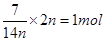 ,②正确;粗铜精练时,阳极最初不是铜失去电子,所以若阴极得到电子数为2NA个,则阳极质量不一定减少64g,③不正确;7g CnH2n中含有的氢原子的物质的量是