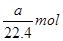 ②标准状况下,a L的氧气和氮气的混合物含有的分子数为a/22.4 NA