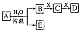 5、填空题 已知:A为淡黄色固体,E、X常温下为气体,A、B、C、D含有相同的金属离子,其转化关系如下图(部分产物已略去)。