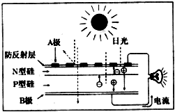 C.上图是太阳光光伏电池原理图,图中A极为正极