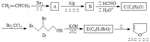 2、填空题 2,3-二氢呋喃是抗肿瘤药物的中间体,也用于电子化学品和香料中,可由丙烯为原料合成: