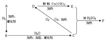 4、填空题 (10分)A—F 六种有机物,在一定条件下,按下图发生转化。