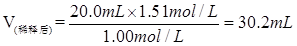 (2)取出20.0 ml该溶液,配成浓度为1.00 mol/L的稀溶液,则稀释后溶液的体积是多少毫升?