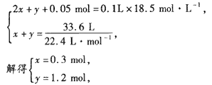 33.6 L,将反应后的溶液稀释到1 L,测得溶液中H+的浓度 为0.1 mol·L-1。求气体A中各组分的体积比。