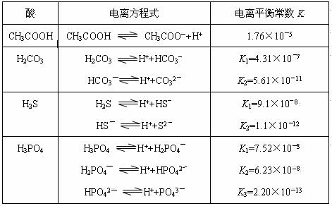 (3)若把CH3COOH、H2CO3、HCO3-、H2S、HS-、H3PO4、H2PO4-、HPO42-都看作是酸,其中酸性最强的是_____________,最弱的是_____________。
