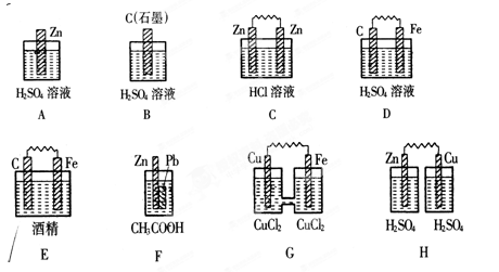E、酒精不是电解质,铁和酒精不能自发的进行氧化还原反应,所以不能形成原电池;